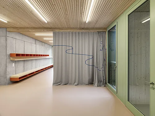 Per il nuovo centro diurno di leva a San Gallo, abbiamo fornito porte interne estetiche e frontali con telaio in legno e pannelli laterali in vetro.